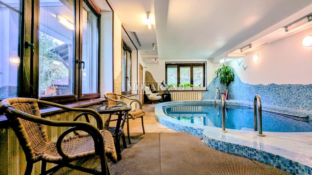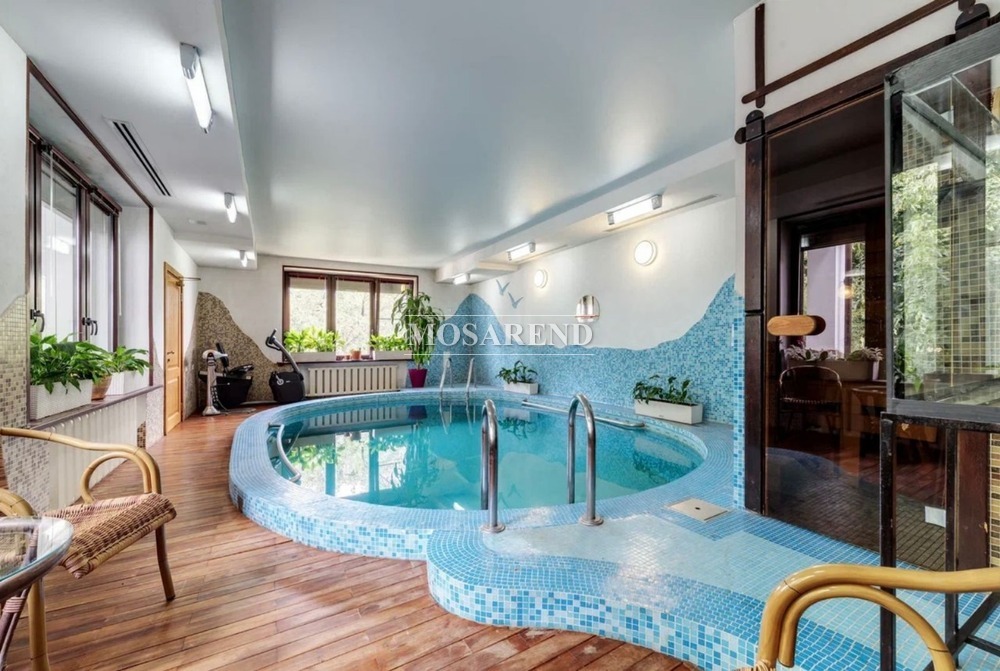 Коттедж с сауной, двумя бассейнами (летним и зимним), просторной бильярдной, гостевым домиком и беседкой подойдёт как для семейного отдыха, так и для компании до 20 человек.