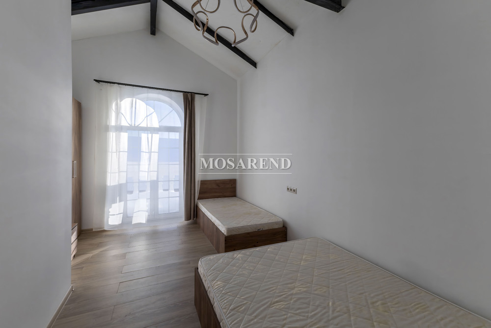 - огромная кухня с круглым большим столом и панорамным видом на лес - на 3 этаже: 6 спален на 20 спальных мест, одна из них мастер-спальня с джакузи на двоих, в 4 спальнях свой выход на балкон