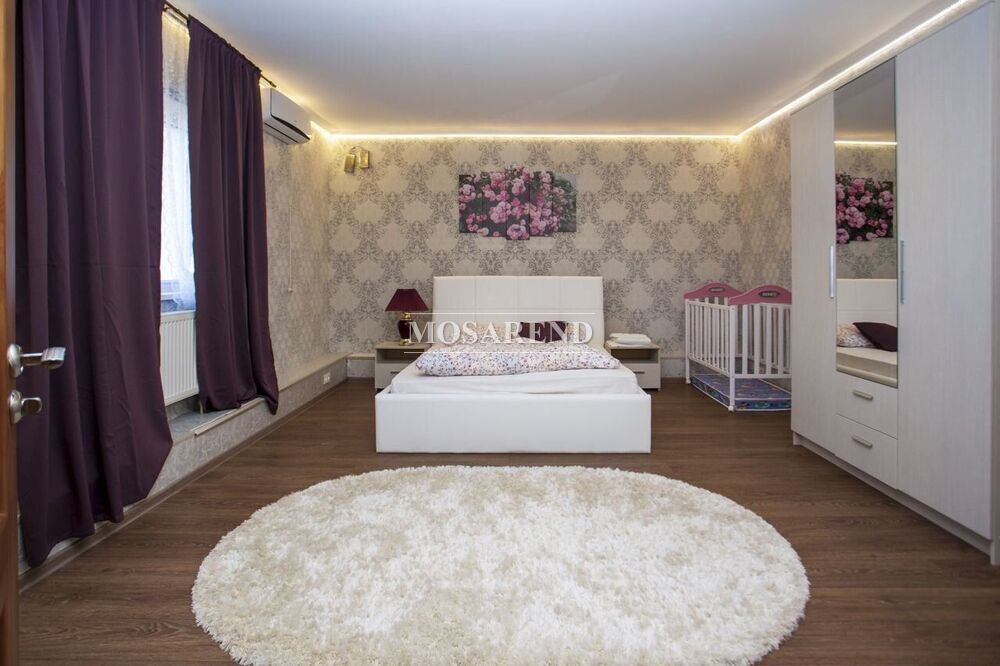 - Живописная территория: зелёный сад с фруктовыми деревьями, ягодными кустами и цветочными клумбами, летняя веранда и парковка для 8-10 автомобилей.
