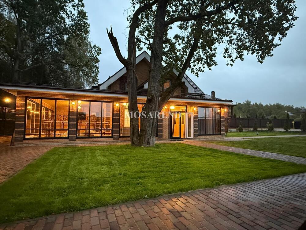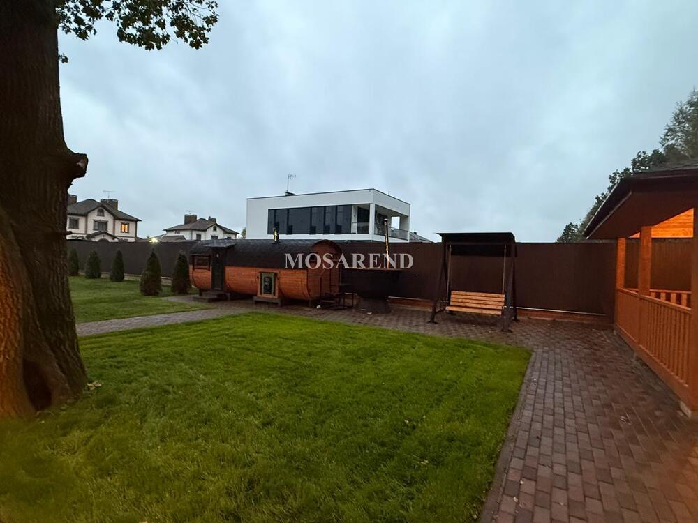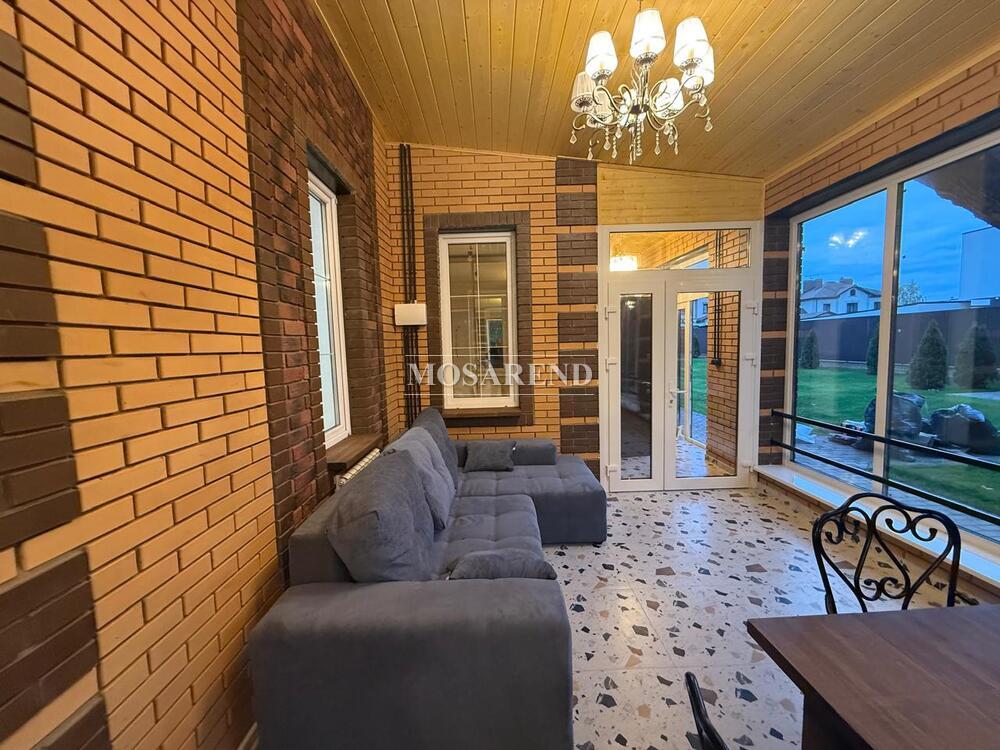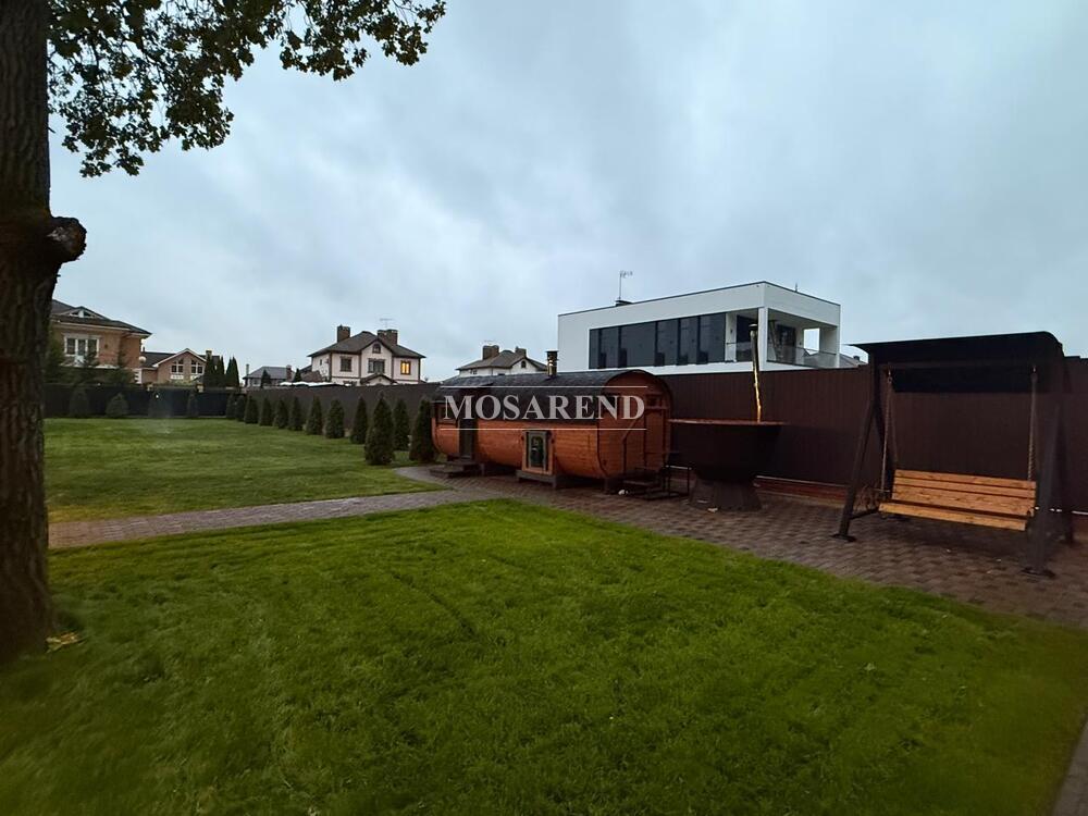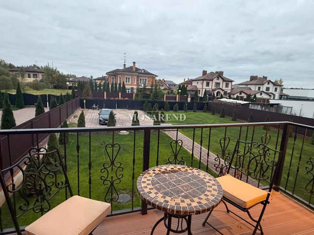 Современный двухэтажный коттедж площадью 300 м2 расположен в 37 км от МКАД по Калужскому шоссе.