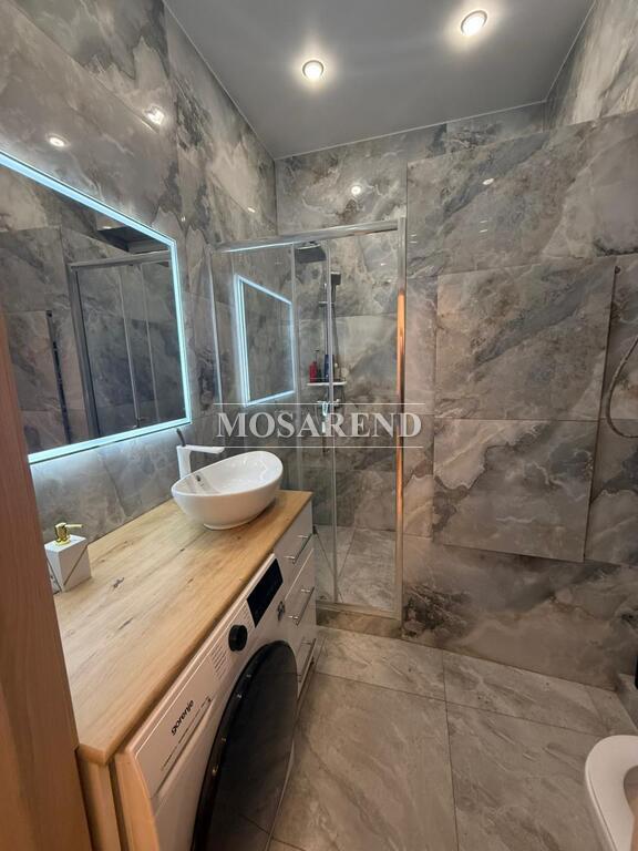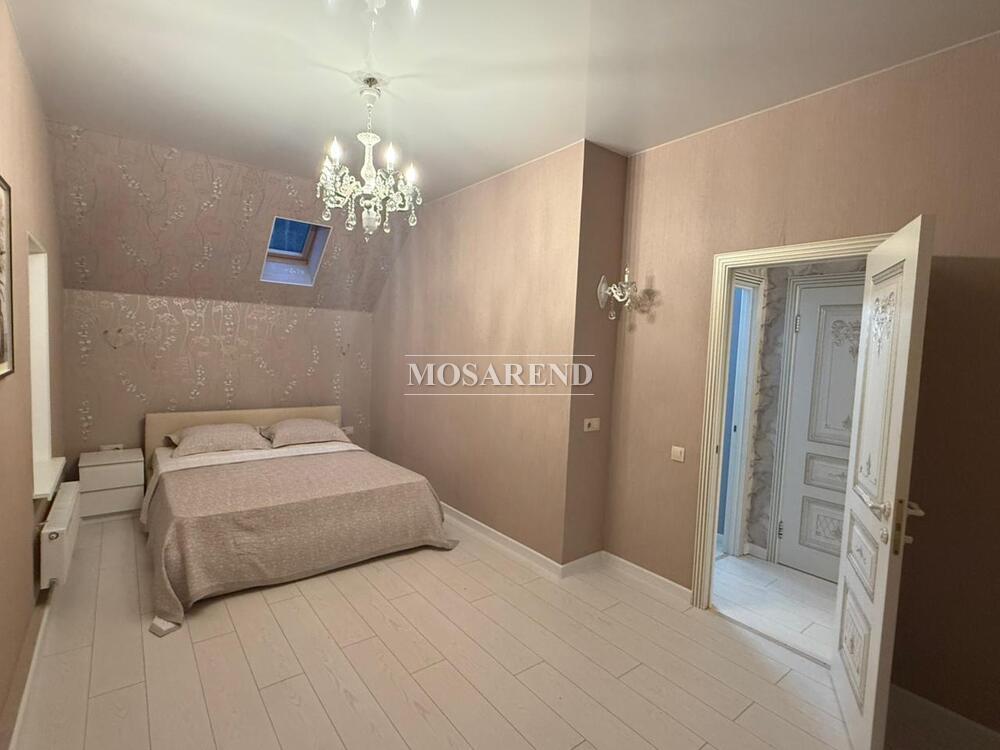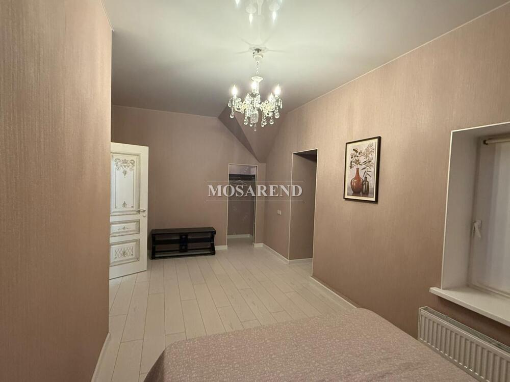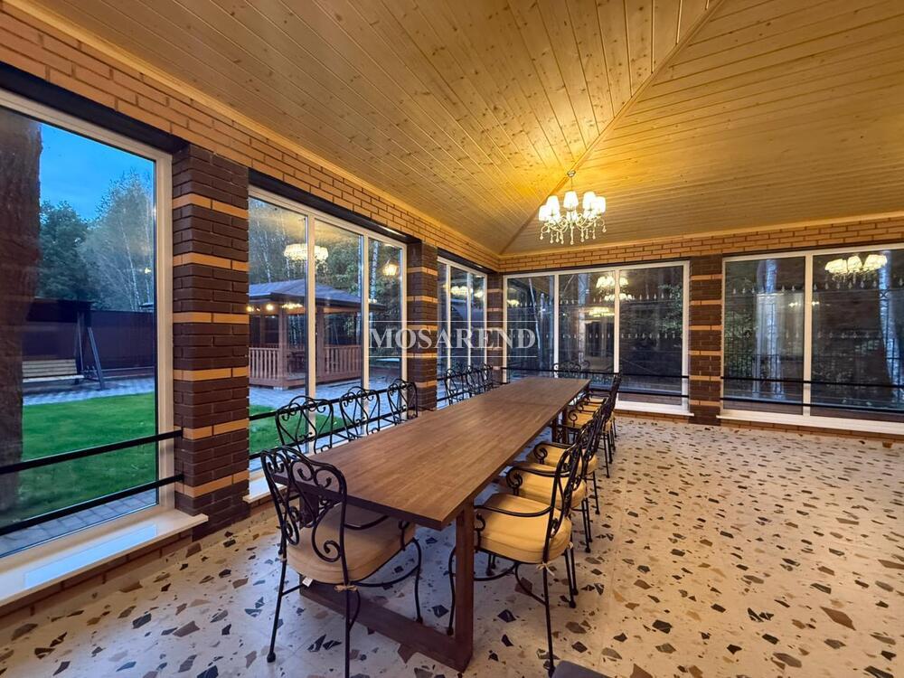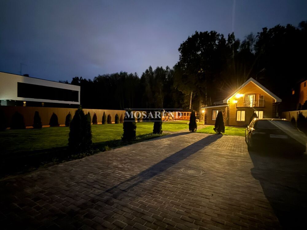 Современный двухэтажный коттедж площадью 300 м2 расположен в 37 км от МКАД по Калужскому шоссе.