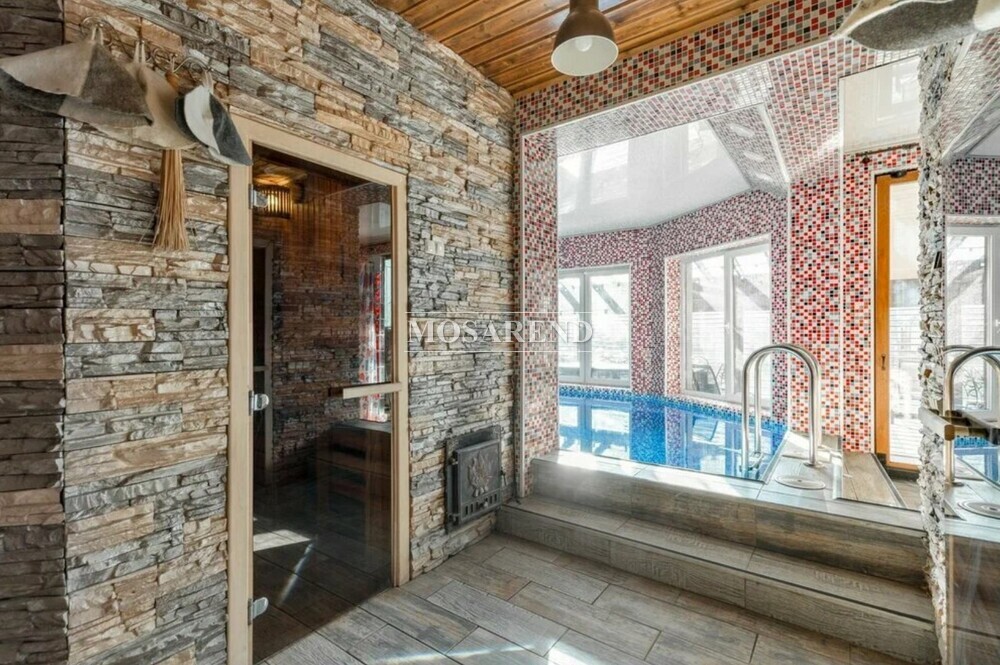 - дом с бассейном: терраса с камином, дровяная печь, тёплый бассейн, баня, 3 спальни с двуспальными кроватями