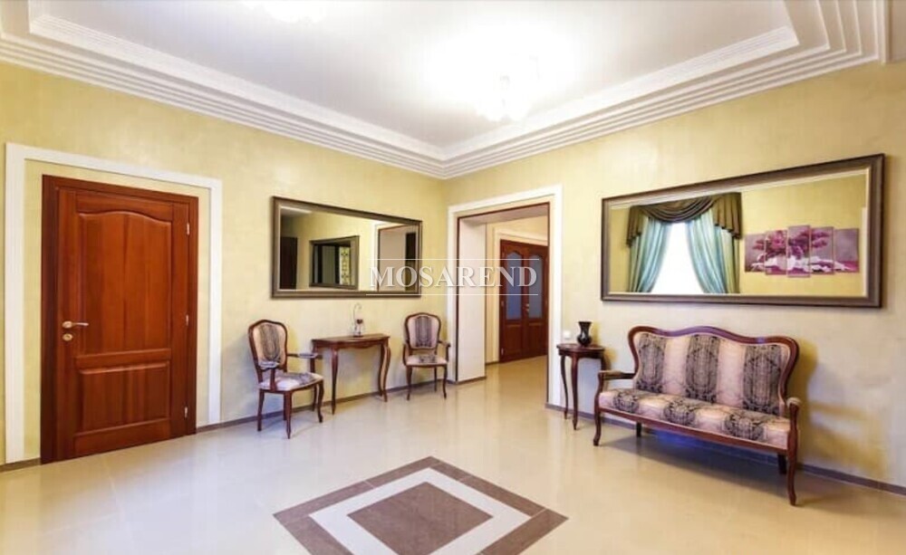 - банкетный зал вместимостью до 35 персон в классическом стиле с роскошными люстрами из хрусталя, мраморным полом, камином, мягкой мебелью и TV