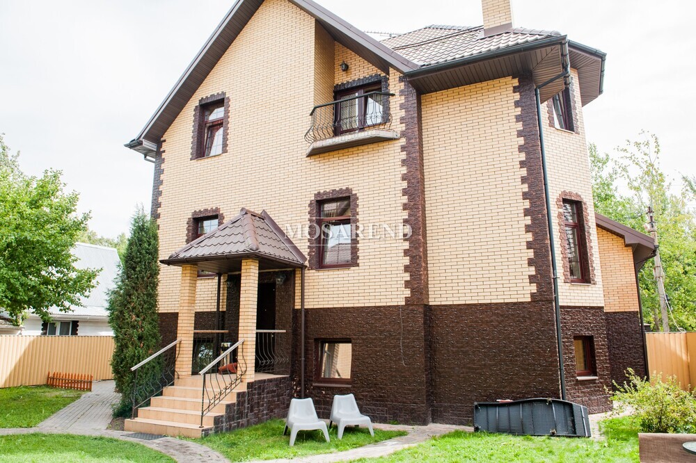Коттедж площадью 600 м2 расположен в 45 км от МКАД по Симферопольскому шоссе, в Чеховском районе на территории садового товарищества в окружении леса, д. Ивачково.